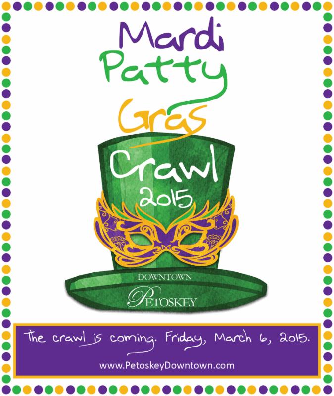 The Mardi Patty Gras Crawl and it's coming to Downtown Petoskey TODAY - Friday, March 6! A fresh take on the always popular progressive dinners, this foodie crawl consists of an hors d'oeuvre crawl through 22 participating Downtown stores, followed by an entrée and dessert in Downtown restaurants. There are two choices for the restaurant crawl; you can either purchase the Mardi Package which is an entrée at Palette Bistro and dessert at Whitecaps or you can go with the Patty Package- entrée at Tap 30 and dessert at the Perry. Tickets for the Mardi Patty Gras Crawl are just $30 and are on sale now and available at the Downtown Office. To make reservations or for more information visit www.petoskeydowntown.com or call 231.348.0388.