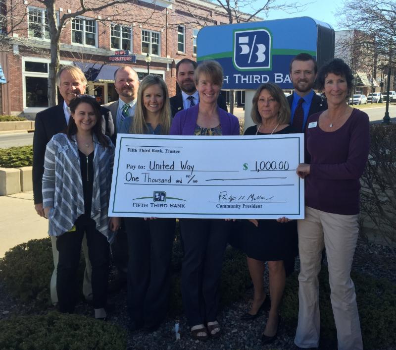 Fifth Third Bank marked "Fifth Third Day - May 3" by awarding a $1,000 donation to Char-Em United Way.