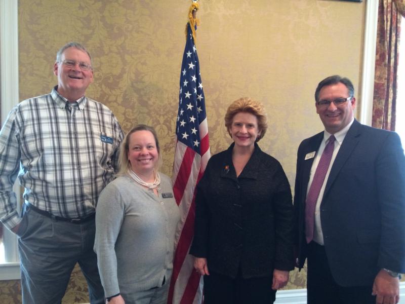 | | Pictured l to r: Jim Baumann, Alison Hubbard President, Senator Debbie Stabenow, and Carlin Smith. |