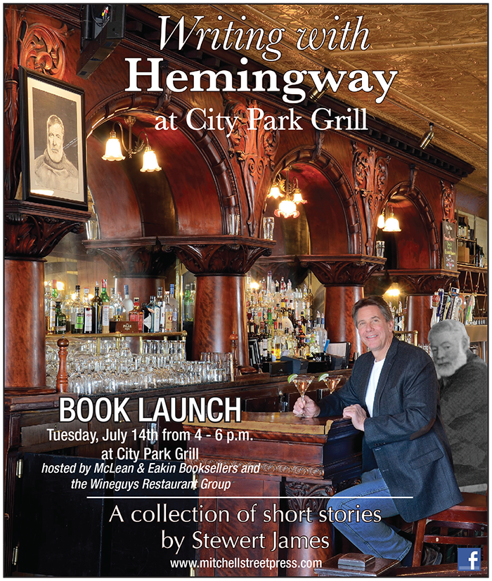 He'll be signing his new book, "Writing with Hemingway at City Park Grill", George Colburn will give an update to his movie, Chris Struble will say a word from the Hemingway Society, and there may be an update to the Hemingway statue.