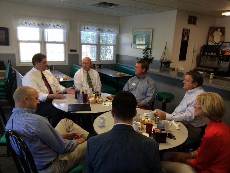 Members of the PRCC Board of Directors and Government Relations Committee and members of the Harbor Springs Chamber of Commerce met with Congressman Dan Benishek Monday Morning. Topics included affordable health care, labor shortages, energy challenges, and available housing. The group met for breakfast at Out to Lunch in Harbor Springs.