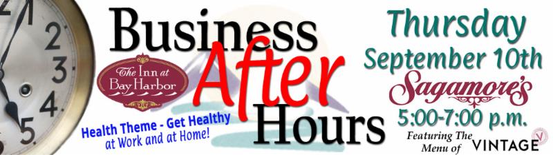 The Next Business After Hours is September 10th at Sagamore's Featuring the Menu of Vintage Chophouse l Wine Bar , inside The Inn at Bay Harbor from 5:00 p.m. - 7:00 p.m. Admission cost is $7 for members; $12 for not-yet members.