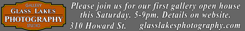You are invited to Glass Lakes Photography on Saturday December 12th from 5 - 9 p.m., for their inaugural open house. Come to see their all new gallery at 310 Howard Street in Downtown Petoskey and to learn about their exciting programs and services. There will be a door prize drawing at 7:30 p.m. where you could win a 16x24 metal print. Beverages and snacks will be provided. Come enjoy 15% off of select photographic prints. Find out more at www.glasslakesphotography.com