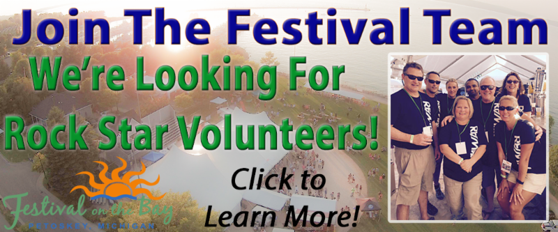 The Petoskey Regional Chamber of Commerce is seeking volunteers to fill some key leadership positions with Festival on the Bay. Each of these positions include participation on the Festival's Executive Team. Festival Executive Team members wear cool shirts, play a decision-making role with the festival, and get the chance to immerse themselves in this great community event. Volunteers walk away with extensive event-planning and strategic experience. They report to Festival Coordinator Johnnie Walker and the Petoskey Regional Chamber of Commerce Staff. Check out positions and descriptions here. To apply for one of the positions, send your qualifications and reasons for interest to Nikki Devitt at nikki@petoskeychamber.com.