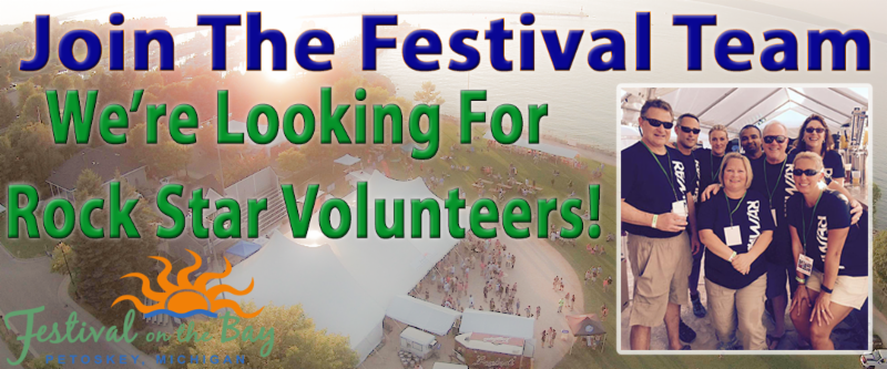 The 14th Annual Festival on the Bay is August 19-20, 2016 at the Petoskey waterfront and volunteer opportunities are available! Volunteering is a great way to be part of a truly fun environment while supporting our community. If you would like to help, the festival can always use volunteers for various shifts, and being a volunteer at the festival provides great exposure for your business or organization and team building.