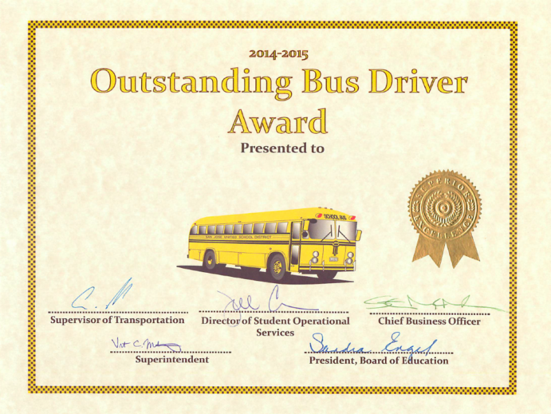San José Unified's 31 school bus drivers each received an Outstanding Bus Driver Award for the job they do every day. Superintendent of Schools Dr. Vincent Matthews and district leaders were on hand to show their appreciation.