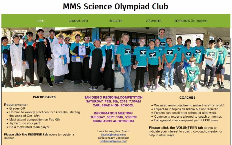 Click here for our website.Science Olympiad brings science to life with hands-on challenges that encourage problem-solving, teamwork and learning! The Muirlands Science Olympiad Club will prepare our students to participate in a San Diego competition on Feb, 6, 2016.