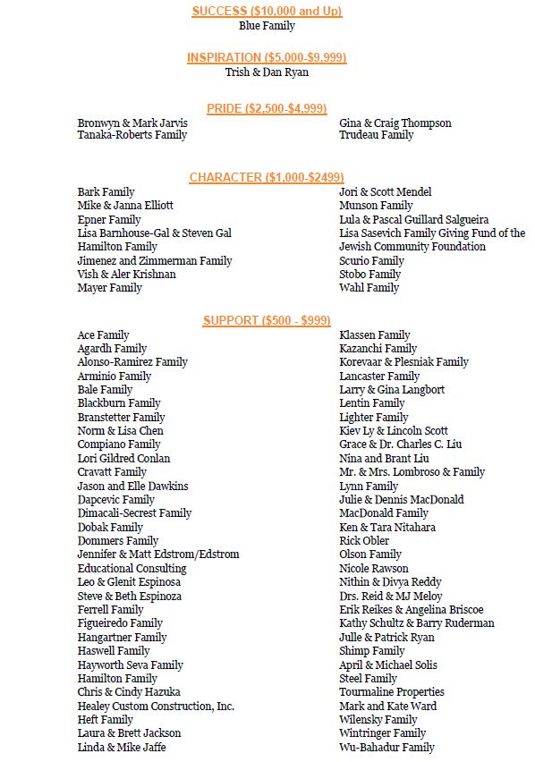 Families donating $500 or more will be invited to a donor party in February.