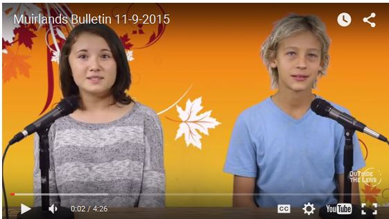This week's video news from Outside the Lens Media @ Muirlands includes winners of the Halloween Costume Contest, the DOLPHIN OF THE WEEK, the weekly trivia question and information about many important happenings at our school.