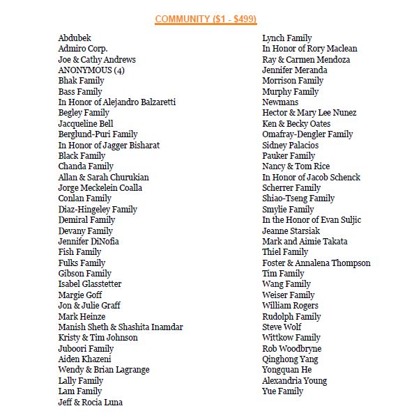 Please consider a gift of $500 or more. Our goal is 100% participation. Any gift, any size helps reach our goal. Families donating $500 or more will be invited to a donor party in February.