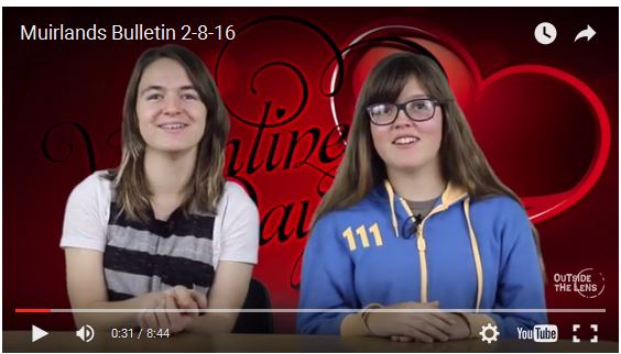 2/9 (Tues): - Art Field Trip - 8th Grade Parent Information Night, 6pm, LJHS Parker Auditorium 2/10 (Wed): ASB 1st Period Class Representative Meeting, 7:30-7:40am, Auditorium 2/11 (Thurs):- Valentines Lunchtime Social, Auditorium - Muirlands Rocks Planning Meeting, 12:30-1pm, Library - Muirlands Foundation Meeting, 1-2:20pm, Library - Unclaimed Lost & Found Items will be Donated to Charity 2/12 (Fri) & 2/15 (Mon): Presidents Holiday, School Closed 2/13 (Sat): Quiz Bowl Competition 2/14 (Sun): 8th Grade Yearbook Ad Deadline 2/17 (Wed): - Last Day to Turn in Talent Show Application - Mr. Benjamin's, 7:30-8:30pm, Auditorium 2/18 (Thurs): 6th Grade Sex Ed. Parent Preview, 6-7:15pm, Room 302