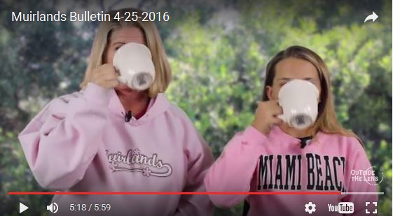 4/26 (Tues): Talent Show Mandatory Rehearsal #3, 2:20-3:30, Auditorium 4/27 (Wed): Muirlands Rocks Planning Meeting, 1-2:10, Library 4/28 (Thurs): SSC/SGT Meeting, 2:30pm, Library 4/29 (Fri): - Talent Show Dress Rehearsal, 2:20-4pm - Talent Show, 4:00-5:30pm, Auditorium