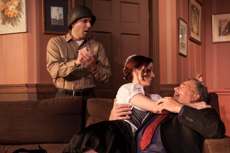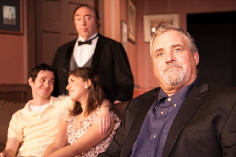 Rear: (L to R) Joe Seibert as Joe, Jeffrey Martorell as Perkins, Elyse McDaniel as Debbie Front: David Jacobs as Harry Douglas