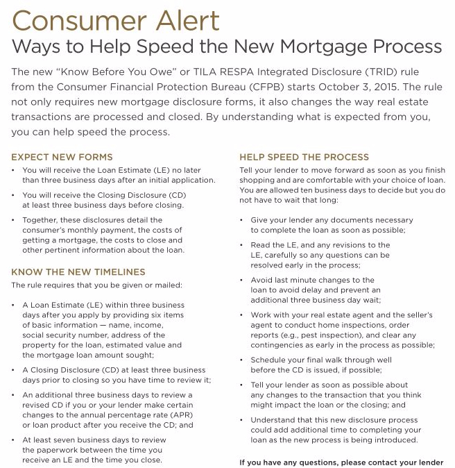 I've been giving you a heads up that there's a new "Know Before You Owe" mortgage initiative coming October 3rd. They involve sweeping changes across the industry. My mortgage guru Dean Rathbun of Avis Mortgage provided us the cliff notes in a way that's more easily understood. Just CLICK the picture to the right to see it for yourself.
