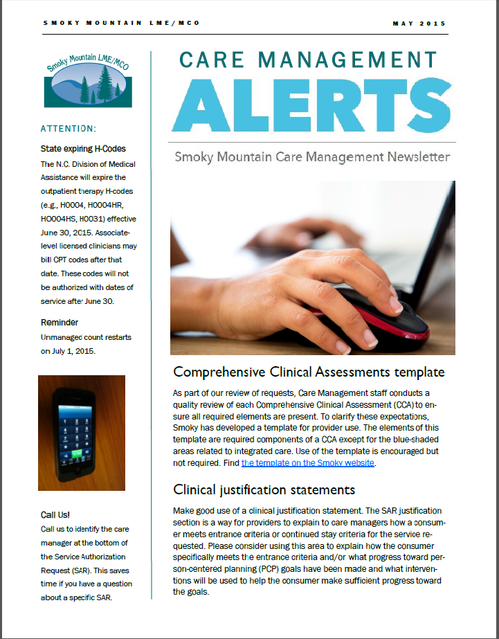 Welcome to the Smoky Mountain LME/MCO Provider Network Bulletin. This monthly bulletin features news you need to know as a provider in the Smoky network and information you need to do business with Smoky.