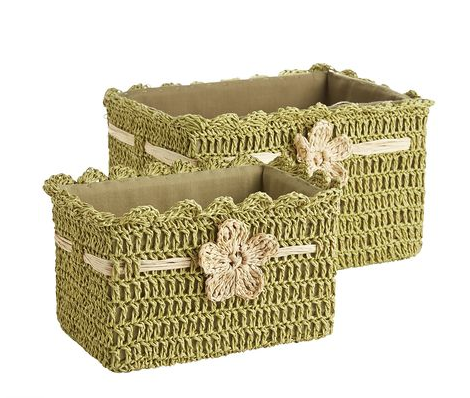 Small baskets like these are perfect for setting up mini diaper changing stations in various rooms around the house. Stock them with a few diapers, wipes, plastic bags, and other gear so you never have to travel far to change the baby. The baskets are pretty enough to be left in sight but should be stored out of reach of little ones.