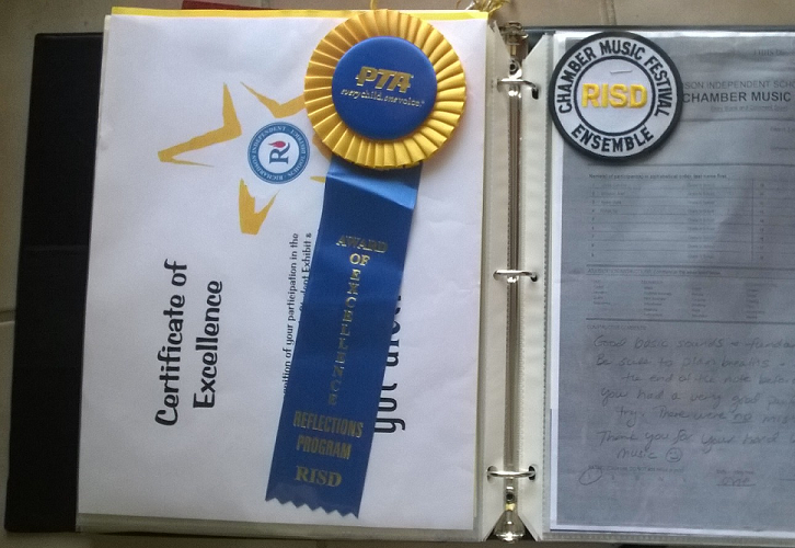 As you sort through the school year's events, put their awards, honors, report cards, volunteer service hours, and similar successes in the page protectors. Add a list of organizations that they were in, leadership positions they held, and jobs they performed.