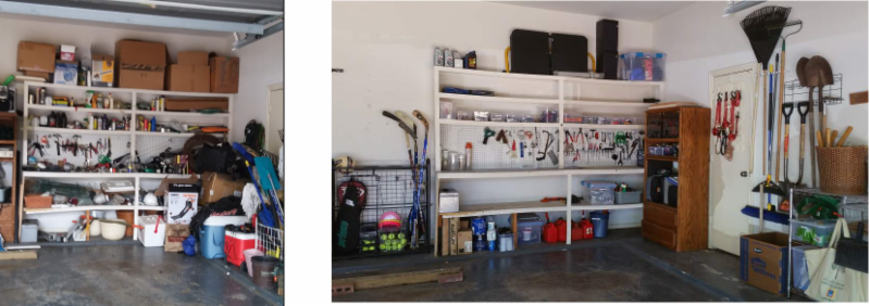 This home has two office areas: his and hers, so we found solutions for each one. The organizers worked diligently to remove unneeded boxes, old electronics, extra furniture, and unnecessary papers. As you purge in your own home, you can collect all the donation items in old boxes, plastic sacks, or even moving boxes. Take these items out of your house so they will be out of your way and ready for pickup by a charity. It is a good idea to establish a permanent donation bin in the garage where you can put items you no longer need or want. Be sure you schedule regular times to drop off the items or have them picked up by a charity truck.