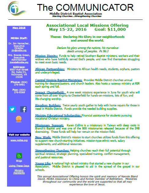 Join us as we meet to find out how God is working through MDBA and how YOU can join Him!