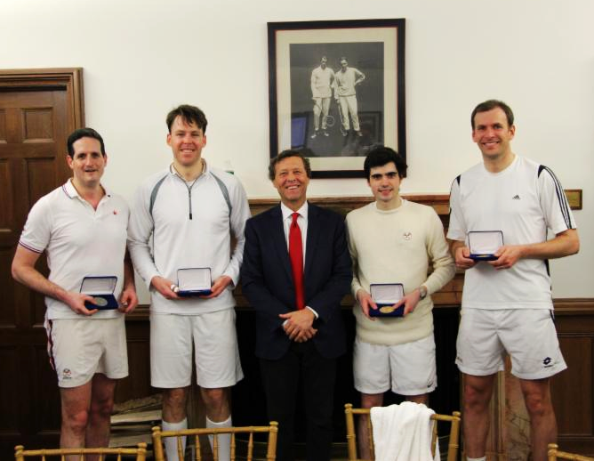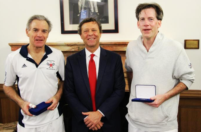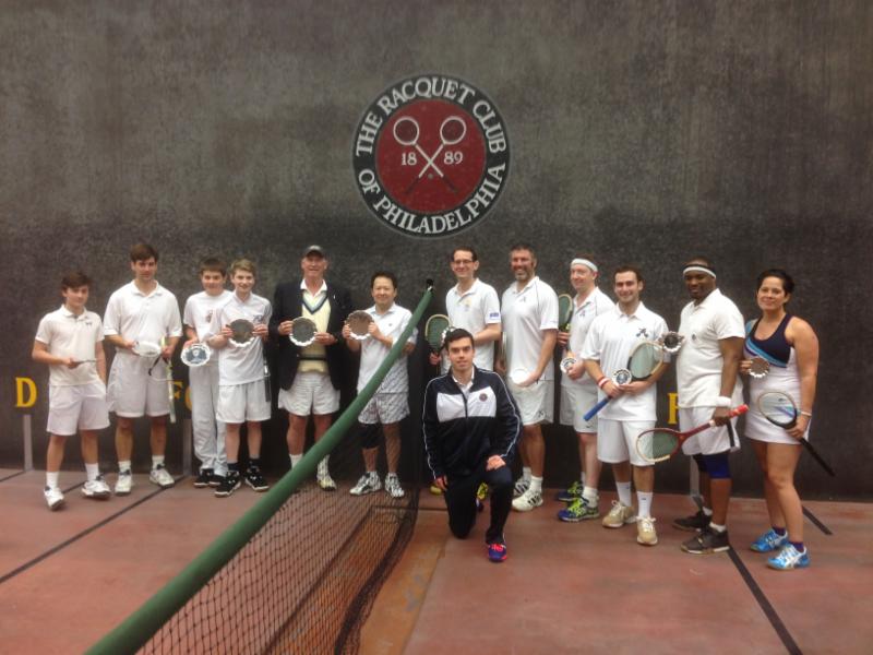 The 2015 US Amateur and US Over-50 Championships were played in New York at the Racquet & Tennis Club March 19-22, 2015. Participation in the event was terrific and play was very competitive throughout the weekend. The Amateur included 18 players in the singles and 10 teams in the doubles. The 50s attracted 15 singles players and 8 doubles teams. A particular highlight was that Adrian Kemp, current assistant pro at the Racquet & Tennis Club and former head professional at the Société du Jeu de Paume et Racquets (Paris), was a key factor in recruiting 22 year-old British amateur champion Matthieu Sarlangue, Benjamin Jacquin-Turrenttini, and Charles-Antoyne Hurstel to come from Paris to compete in the US Amateur.