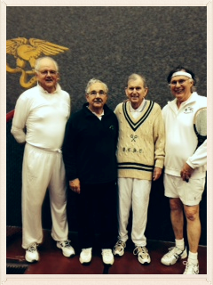 The Racquet Club held its last weekend event of the calendar year this past weekend. The draws were a bit small but extremely competitive on court. The singles draw saw three hard fought Quarter Final matches on Friday with David Boenning over taking Jules Zacher 6-0, 6-1, Peter Vogt winning 6-0, 6-2 over Steve Fazzini and Al Gordon out lasting Sewall Hodges 6-0, 6-3. The Semi's on Saturday saw Greg Van Schaack have a classic floor game battle against David Boenning. Greg Van Schaack hit many openings to win 6-3, 6-3.The second Semi saw Peter Vogt play a flawless game of tennis against Al Gordon. Vogt couldn't miss and won 6-1, 6-1. The stage was set for a great Final on Sunday. Greg was keen to redeem himself from a earlier loss to Peter in the 50's a week prior. The first set was knotted at four games all and this game saw twelve deuces. With a long rally exchange Van Schaack hit a ball from his backhand side over the high part of net after a tremendous get from Peter he ruptured his hamstring and had to retire the match. Peter was playing a very solid game up to that point and was gutted that he could not continue.