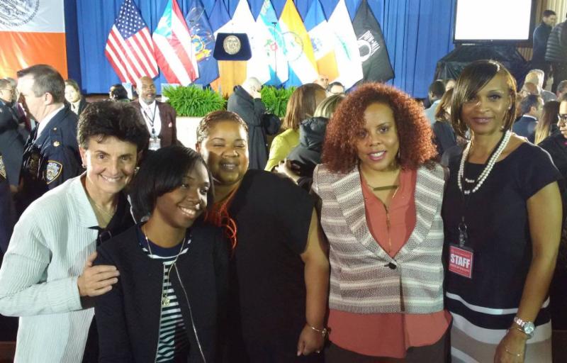 In February, DSC member Girls for Gender Equity (GGE) and members of the Young Women’s Advisory Council for the Young Women’s Initiative attended New York City Council Speaker Melissa Mark Vivirito’s State of the City Address. At the State of the City, Speaker Mark Vivirito announced a commitment of 10 million dollars for the Young Women’s Initiative (YWI), a citywide effort to support the needs of cis and trans young women of color. YWI will have a 10 million dollar match from philanthropy distributed over the course of two years. GGE has long called for an investment in young women of color and both GGE staff and youth organizers were a part of the creation of YWI. As the initiative moves into its second phase, GGE will continue to support the Young Women’s Advisory Council, a body made up of young women of color who are a part of YWI to ensure that young people have voice in the work of the initiative.