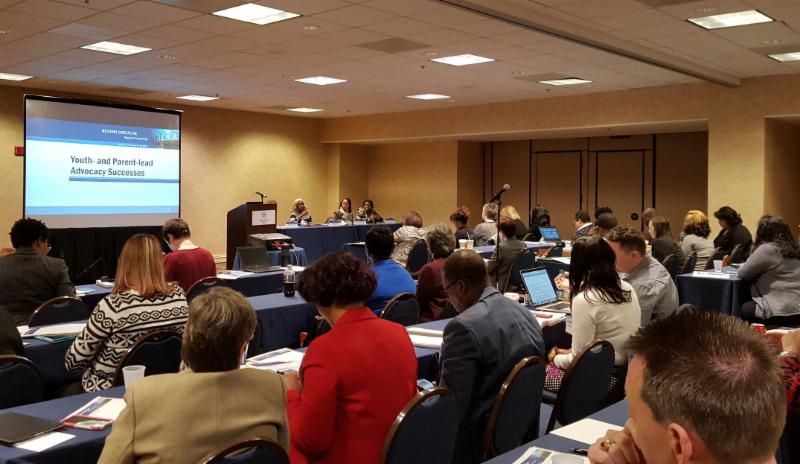 From February 17-18, DSC members from Gwinnett SToPP, the Youth Organizing Institute (YOI) and the National Economic and Social Rights Initiative (NESRI) presented at a Regional Rethink Discipline Convening in Atlanta hosted by the U.S. Department of Education. Teams of district and school leaders from 12 school districts in Florida, Georgia, North Carolina, South Carolina and Tennessee came together to develop concrete steps to advance school discipline reform in their communities. Marlyn Tillman of Gwinnett SToPP and Markyona Patrick of YOI presented on a panel where they discussed the importance of youth and parent leadership in transforming school discipline. Liz Sullivan-Yuknis of NESRI facilitated two workshops on the DSC Model Code on Education and Dignity. You can find resources from the convening here.