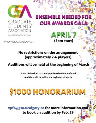 Tickets cost $5 and exact change is appreciated if you would like to pick them up at the GSA office. If you are on Foothills or Downtown campus and are interested in attending the event or if you have any questions, please e-mail gsasesc@ucalgary.ca and we will set up a time to meet with you on those campuses.