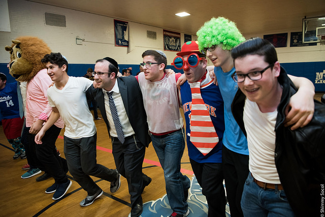 In honor of Rosh Chodesh Adar Sheni, the entire MTA community gathered in the Lion's Den for the school's annual Purim Chagigah - in this case, a Pre-Purim Chagigah. The day began with the gym being filled with Ruach and Simcha as teachers and students alike joined together for uplifting and crazy dancing in honor of this month of "Marbim B'Simcha." We subsequently heard divrei Torah from HaRav Dovid Miller, the Rosh Yeshiva of YU's Gruss Center in Yerushalayim, and a short whiler later, we were all treated to the award winning MTA Chorus and Band with special guest star President Richard Joel, who vcmae by unexpectedly and joined them in the middle. The dancing continued for another hour or so before the annual costume contest was held. Capably judged by Mrs. Levitt and Morah Haibi, the contest was full of thoughtful and unique costumes and provided a great ending to an uplifting Chagigah. Congratulations to Yedidya Schechter ('19), who dressed up as Frankenstein, on winning the contest and continuing the Schechter family legacy in that manner. A shoutout as well to runner ups Eli Kahn ('16), Shimmy Mandelbaum ('16), Aron Fried ('16), David Kaikov ('16), Naftali Pudell ('17), and Daniel Arshadnia ('19).