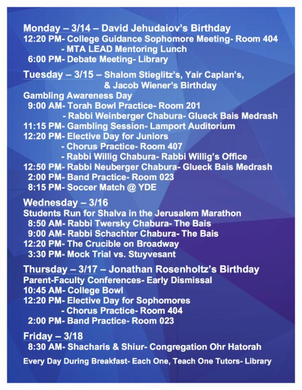 Once again, MTA is showing its Gemara prowess in the Bronka Weintraub Bekius Program. The YU sponsored program, which is run by yeshiva high schools across the continent, involves a competition among hundreds of students in fast-paced study aimed at mastering significant amounts of Gemara.