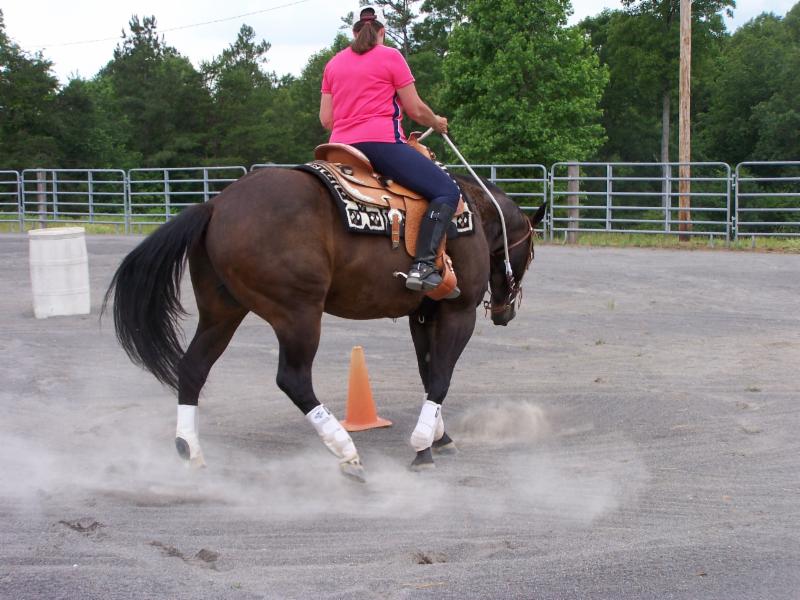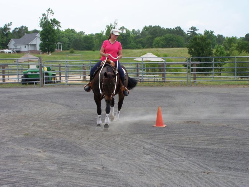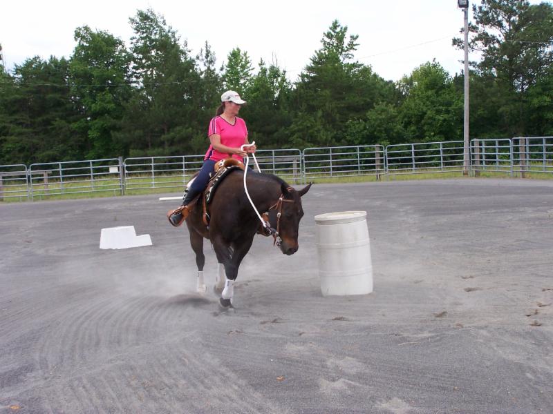As a retired western pleasure champ, Samson is no barrel racer by a long shot, but I like to "work" him around barrels routinely to help him with his circling exercises, and to keep him bending, flexible, and light on the forehand.