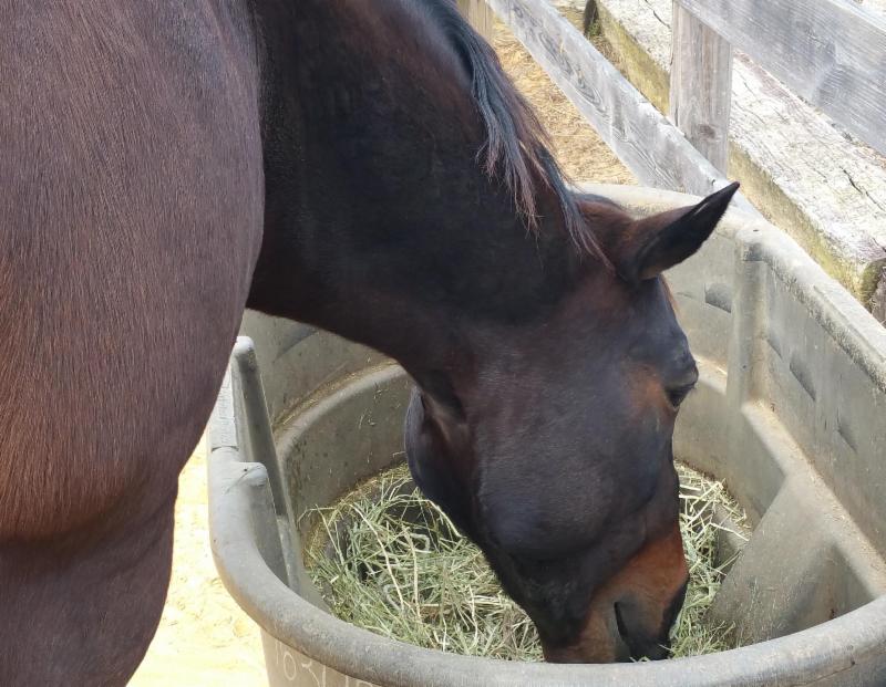 Samson is enjoying lots of rest-time and munching on timothy hay each day while he is rehabilitating