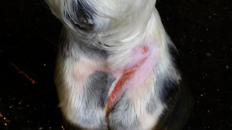 Samson's injured leg in December.