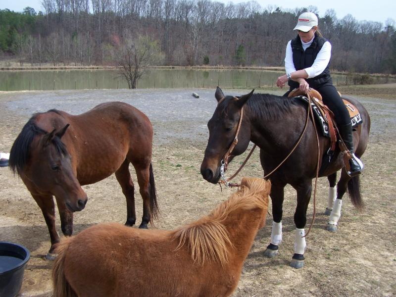 My horse, Samson, is comfortable riding circular patterns. Why? Because of the location of his eyes, a circle pattern allows him to have a broader view of his world, including what is ahead, behind, and to both sides. Also, note the natural bend (curve) in Samson's body when he is on the circle. Most riding discipline's that require the horse to have a lot of athletic ability and keen awareness take advantage of the horse's innate ability as a circular thinker. For example, the sport of reining incorporates lots of small circles, large circles, and spins.