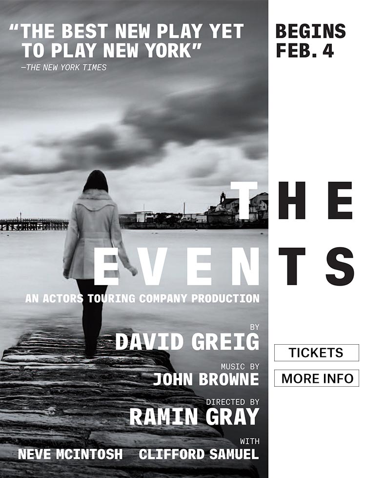 New York Theatre Workshop (79 East 4th Street) The play revolves around characters that survive in the aftermath of a tragedy, depicting what it is that makes us human. Opening night February 12th, through March 22nd.