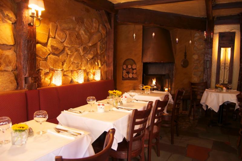 Wood-beamed ceilings, amber lighting and a sense of overall warmth, make this a cozy spot for dining. You walk down the stairs from the street and three wonderful rooms interconnect so you feel as if you're inside a chateau.