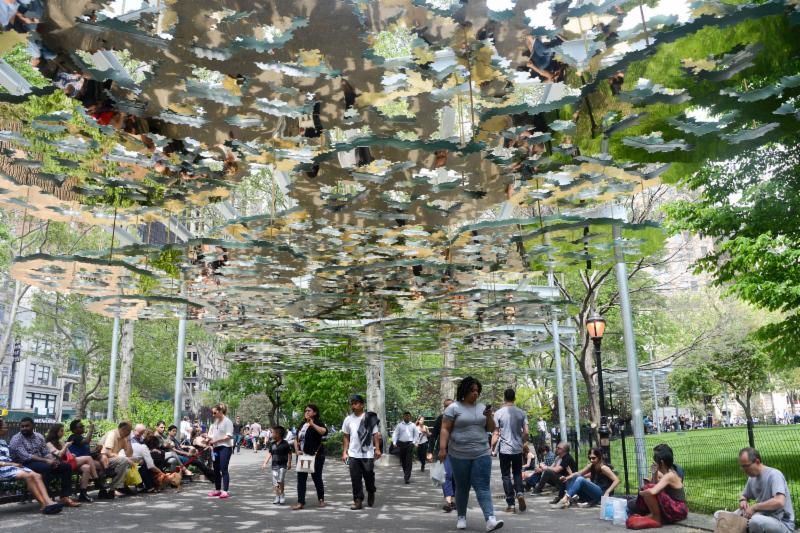 500 feet of sprawling sculptures made of golden canopies suspended above the park's pathway. An eye-catching exhibit.