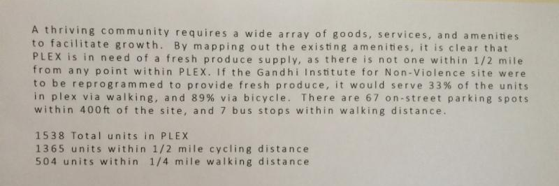 Over the winter months the Gandhi Institute has been meeting and collaborating with architecture students from RIT to put together a plan for a future greenhouse right here on Plymouth Ave. The students are working as part of an extra credit course in the school of environmental architecture. The greenhouse will be in the space directly behind the garden, and will serve as a year round source of food production. An exciting aspect of this project is that it will create a source of fresh produce for the PLEX neighborhood, aligning with a neighborhood context analysis (see below). Goals for the project include: composting, yearly yields of 250 lbs of produce, eco- heating and cooling, etc. Come by Gandhi to hear more about this project and see the early plans!