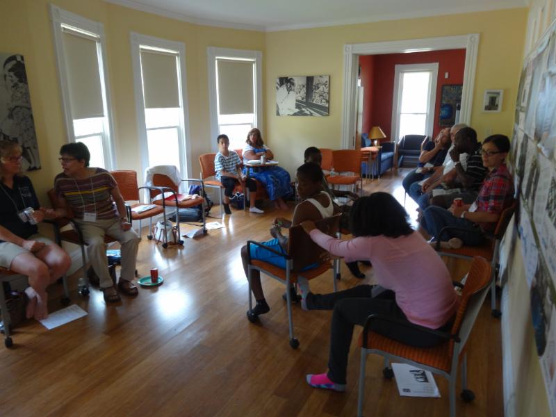We began our second year of collaboration with the Seedfolk youth program and their terrific group of Southwest youth, who will be here twice weekly over the summer growing vegetables in the garden. And we hosted a 'leaderful' group of middle school students, staff and the principal of School 17 for two days of Dr. King's nonviolence with returning visiting Seattle trainer Jonathan Lewis and two great Seattle undergrads earlier this week. The collaboration with #17 continues in the fall with daily programming for these students and others, to build leadership, social emotional skills, peer mediation and restorative approaches.