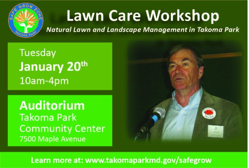 The City of Takoma Park and Beyond Pesticides will host a workshop on organic turf management. The workshop will focus on a Systems Approach to Natural Turf Management, which integrates three concepts: an understanding of the soil and its biomass; sound management techniques; and the use of natural, organic products. All attendees will have the chance to ask questions of the experts and prepare for the spring.Don't miss this opportunity to hear from the nation's expert on lawn and turf care! Chip Osborne, president of Osborne Organics, has over 15 years experience creating sustainable and healthy landscapes, and 35 years experience as a horticulturist. The event is free of charge and lunch will be provided, register for the event today ! Please email or call Nima Upadhyay at nimau@takomaparkmd.gov or 301-891-7621 to register for the event. http://www.takomaparkmd.gov/safegrow About Safe Grow On July 22, 2013, the Takoma Park City Council unanimously passed the Safe Grow Act of 2013 (PDF), which generally restricts the use of cosmetic lawn pesticides on both private and public property throughout Takoma Park. This is the first time that a local jurisdiction of this size has used its authority to restrict pesticide use broadly on private and public property, exercising its responsibility to protect the health and welfare of its residents through its local government. The law fits into the City's strategic plan to lead community efforts in environmental sustainability, protection and restoration, and secures Takoma Park's role as a leader in sustainability in the state of Maryland and the nation. This landmark legislation will protect residents of Takoma Park from involuntary poisoning, reduce the poisoning of pets and wildlife, and protect the watershed from harm posed by pesticides used to maintain the cosmetic appearance of lawns. The Safe Grow Act of 2013 establishes public education requirements and phases in restrictions of harmful pesticides for lawn care on public and private property within the City.