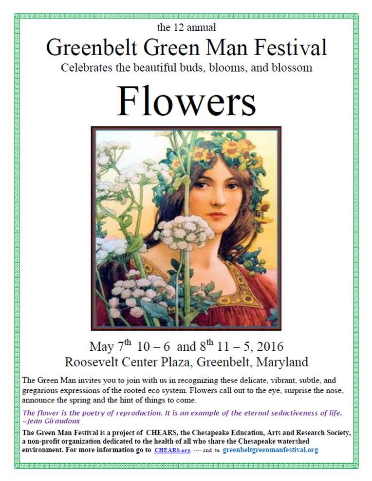 Center Garden: Sunday April 3- 10-12 Sunday April 17-10-12 Sunday May 1: 10-12 Sunday May 8:2-4PM Green Man Festival Earth Squad (Wed afternoons-volunteers welcome) April 16--10:30-12:00 (Earth Day celebration with City of Greenbelt) May--21-Celebration of Spring June 18-Food Forest Entrance