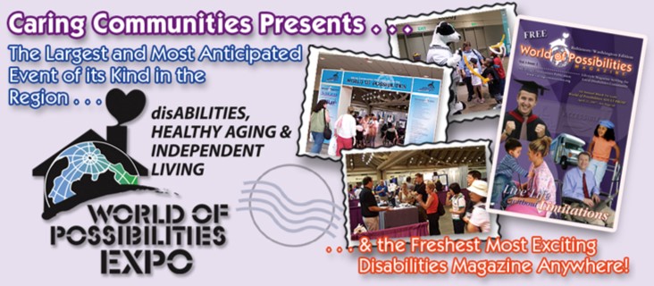 Don't Miss the World of Possibilities Disabilities, Healthy Aging, and Independent Living Expo. This Expo is increasing in popularity and is now the Region's most important forum for disability-related resources. Everyone within the disabilities and senior community, children with disabilities and their families, caregivers/service providers, veterans, baby-boomers should all be there!