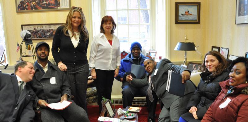 Senator Kathy Klausmeier (center) met with constituents who work in The Arc Baltimore Landscaping program along with Arc staff on DD Day.