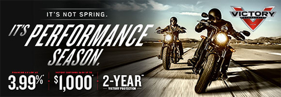 Performance Season! Rebates up to $1,000* + 3.99% APR Financing + 2 Year Victory Protection**