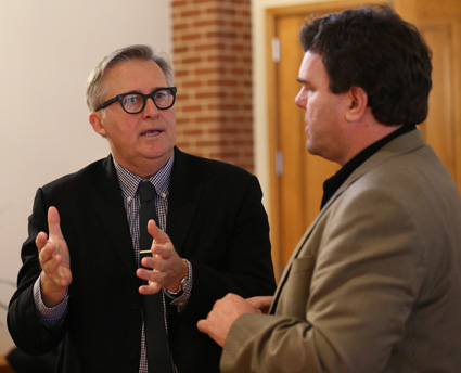 George Mason (left), pastor of Wilshire Baptist Church in Dallas, and Kyle Henderson, pastor of First Baptist Church in Athens, visit during a Pastors for Texas Children gathering at Baylor University's Truett Seminary. (PHOTO / Robert Rogers / Baylor University)"We have the money to do it. Do we have the will to do it?" Charles Foster Johnson, executive director of Texas Pastors for Children, asked about 200 ministers and educators during a luncheon at Baylor University's Truett Theological Seminary. Texas Pastors for Children, an advocacy group that encourages churches and their leaders to support quality public education for all students in the state, sponsored the event.