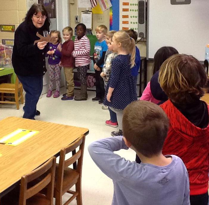 Mrs. Patterson's KT class recently enjoyed Gingerbread Man Day. The Gingerbread Man Mrs. Patterson made for the class ran away. Students followed clues all around the Lower School Annex, found him, caught him and ate him!
