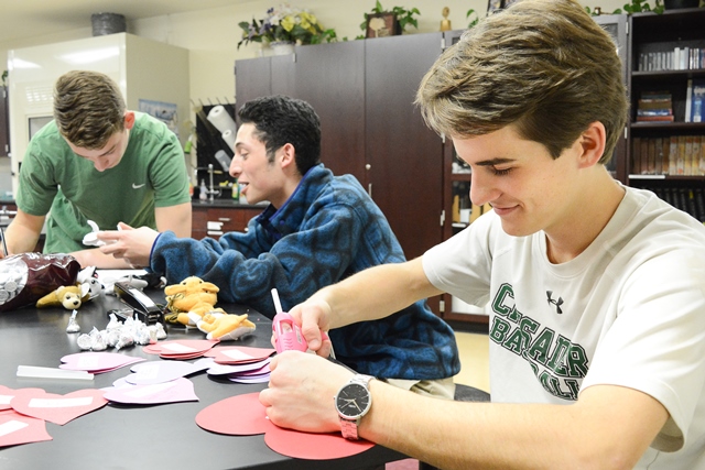 Juniors Matthew Mendelsohn, Victor Prieto & Stephen Glenn are hard at work preparing hundreds of Candy Grams for delivery.