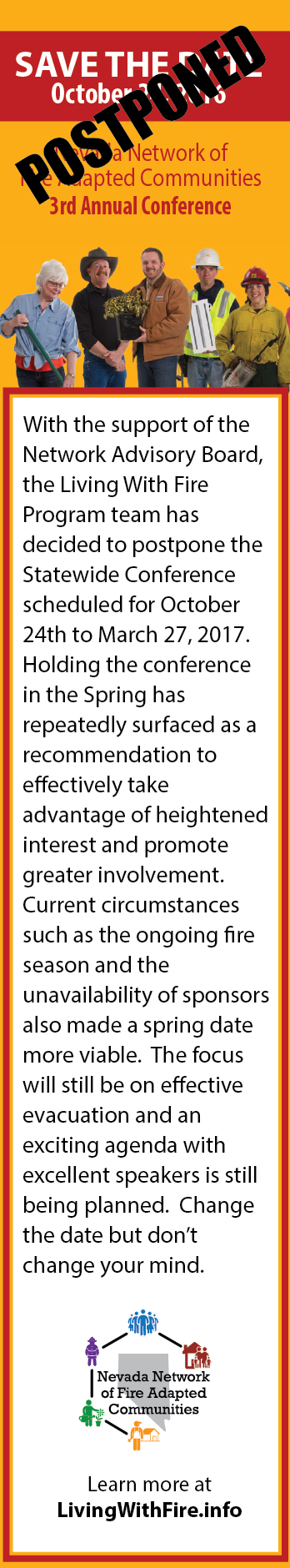 This newsletter is provided by University of Nevada Cooperative Extension, an EEO/AA institution, with funding from a State Fire Assistance grant from the Nevada Division of Forestry and USDA Forest Service. Additional support is provided by the Bureau of Land Management - Nevada State Office.