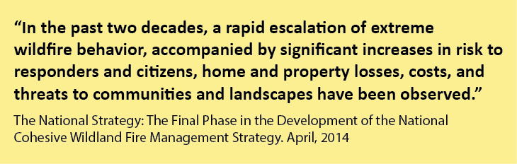 In response, the nation's wildland firefighting experts have been developing a plan (i.e., The National Cohesive Wildland Fire Management Strategy) to address the growing wildfire threat. In the plan they identified the following three goals: