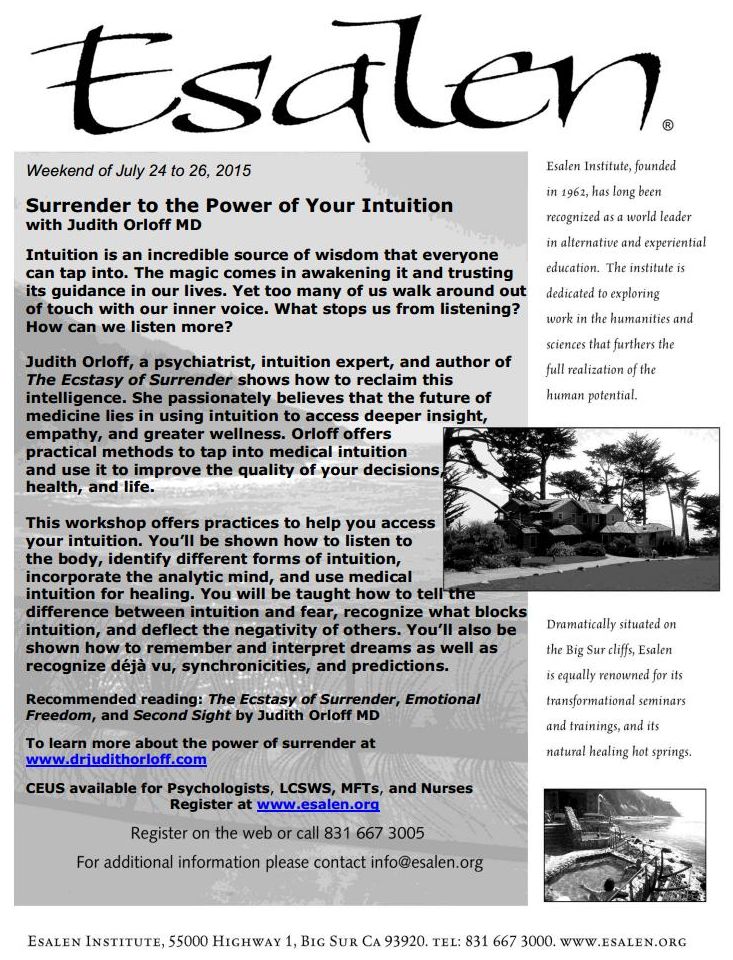 Surrender to the Power of Your Intuition Esalen Institute - Big Sur, CA